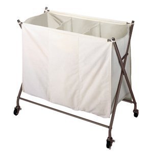 Sort your laundry with ease and style with this laundry sorter. This hamper features a sturdy canvas bag with a fold over cover, keeping dirty clothes out of sight and out of mind. Casters feature step on locks, simply roll the laundry cart from bedroom to laundry room and back again when you are done! Sturdy and stylish frame combined with crisp canvas laundry bag make this an eye-pleaser in any room of the home! You won't believe how easy laundry day will be with this Triple Laundry Sorter. Assembly level/degree of difficulty: Moderate.