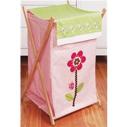 The Big Rigs Nursery Clothes Hamper features a motorcycle and traffic cone design theme in shades of brown, blue and yellow.