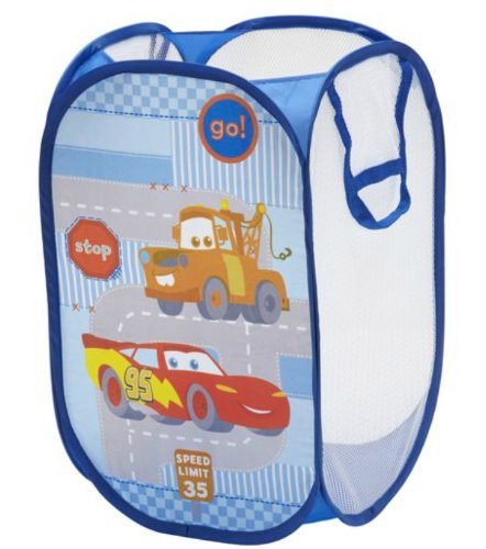 Keep baby's nursery neat and tidy with the Disney Baby Cars Pop-Up Hamper. It is the ideal spot for keeping laundry. The polyester baby laundry hamper on the steel frame is sturdy. The Disney baby hamper can be wiped clean with a damp cloth. The Disney Baby Cars Pop-Up Hamper comes with a carrying handle for easy portability.