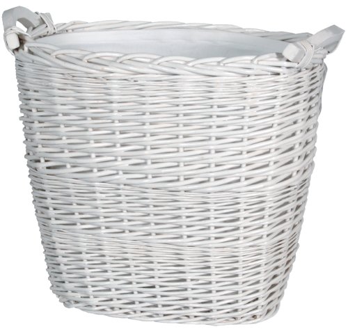 - Made from hand woven white painted willow; Constructed into the basket are durable wood handles for easy transport from room to room